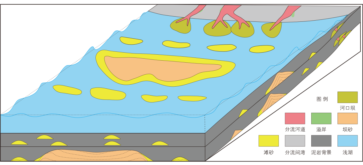 Key words: shallow water delta, offshore beach-bar, lake wave modification, architecture, Shengtuo Oilfield, sedimentary numerical simulation