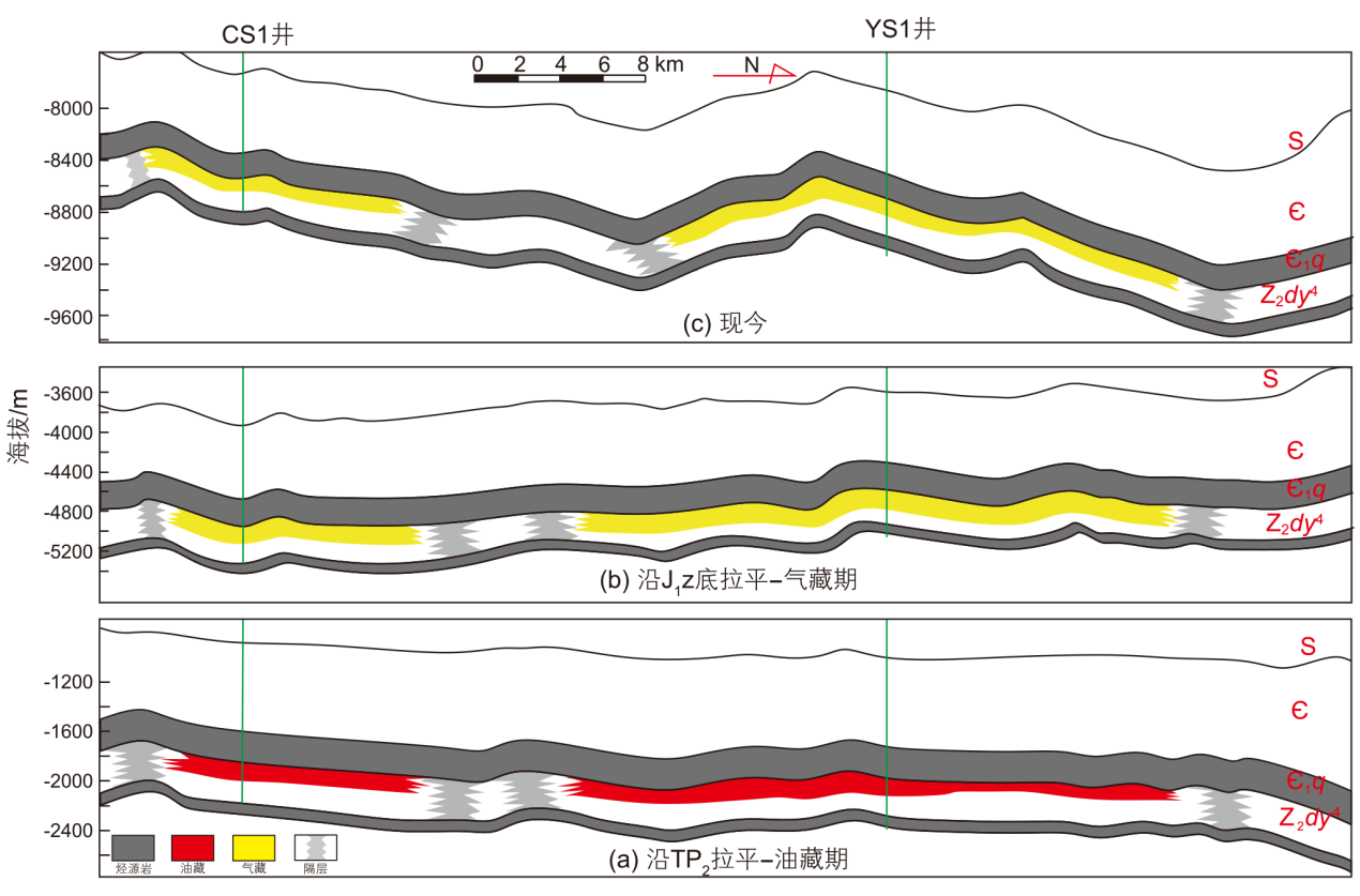 摘要: 深层-超深层油气资源潜力大但探明率低,是我国油气现今勘探发展的重点领域。然而,针对深层-超深层领域的资源潜力评价仍面临烃源岩热演化程度高、储层成岩改造强、油气藏多期调整改造与有效保存等一系列科学技术难题。近期,元坝地区超深层油气勘探获得新突破,在埋深近9000 m的灯影组四段发现了天然气藏,揭示了四川盆地北部超深层良好的勘探前景。本文以最新钻井YS1井的资料为主,结合周缘钻井、露头及其分析测试等数据,对研究区灯四段气藏的烃源岩、储集层等成藏关键要素及油气成藏过程开展系统研究,以期为超深层油气藏勘探评价提供借鉴。结果表明:(1)YS1井灯四段气藏烃源岩来自寒武系筇竹寺组,烃源岩在志留纪进入低成熟阶段,至晚二叠世-三叠纪达到中-高成熟阶段,在中侏罗世-早白垩世达到高-过成熟阶段,目前处于过成熟阶段。(2)灯四段气藏储层主要为台缘丘滩相白云岩储层,其经历了长期压实、压溶和深埋胶结,现今表现为低孔、低渗的特征。(3)川北地区台缘丘滩储层紧邻筇竹寺组深水相优质烃源岩,具有“棚生缘储,上生下储”的有利源储配置条件,是古油藏形成的物质基础。(4)灯四段气藏经历了多期调整改造。古油藏期,研究区处于川中古隆斜坡区,受滩间致密层封挡形成规模岩性古油藏;油气转换期和气藏期,受北部盆缘米仓山隆升影响,研究区处于米仓隆起斜坡区的局部微幅隆起构造,形成受构造-岩性共同控制的古气藏;晚期受喜山运动影响,盆缘隆升挤压,元坝地区处于九龙山背斜南西翼,灯影组古气藏局部调整形成现今气藏,YS1井处于古气藏、现今气藏叠合有利区。四川盆地北部超深层油气藏勘探应以寻找大型规模古油藏为基础,进而落实成藏关键期的有利古构造特征;持续有效的保存条件和古、今构造高部位叠合区是油气运聚调整的有利富集区。